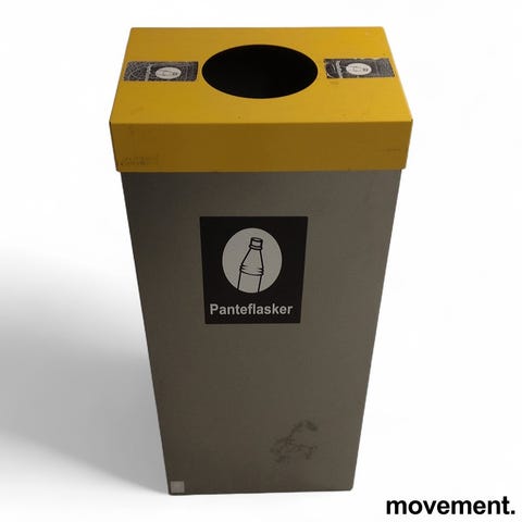 En moderne og slitesterk avfallsbeholder, også kalt søppeldunk/kasse, i pulverlakkert stål for innendørs bruk.