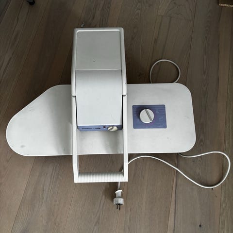 ElnaPress Electronic Klespresse, type EP1. Ikke brukt på flere år, men ser ut til å være i god stand. Selvfølgelig noen flekker etter flere års bruk, men trekket kan vaskes.