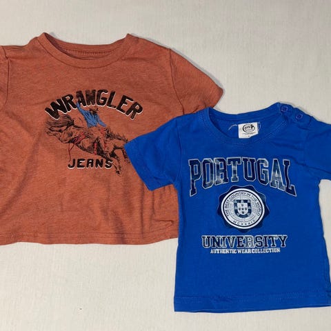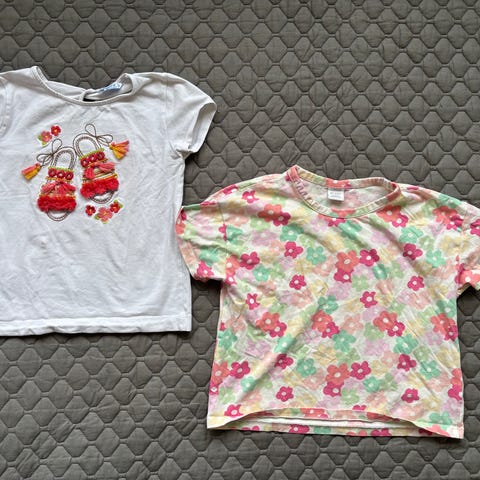 2 stk helt nye T-skjorter i str 74-80 (1 år). Kr 50 pr stk. SAMLET kr 75. Lengde 35 cm vidde 60 cm. Ingen skader. Sendes mot porto.