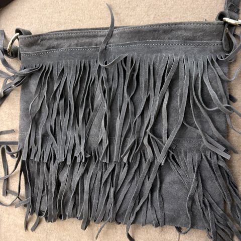 Lekker beige veske med fletter og frynser. Vesken har et kult trehåndtak og en løs pose inni (så du kan skjule innholdet). Jeg sender stort sett alltid første dag etter mottatt penger for frakt :)