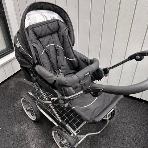 Solid and very lite used baby stroller. Has been used as sleeping stroller at barnehage.