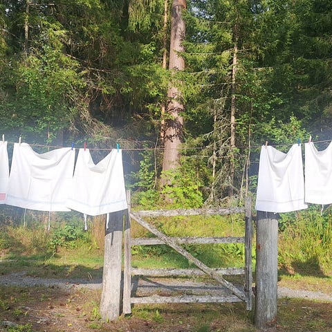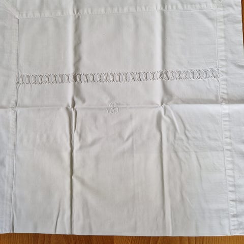 4 stk eldre putevar, eller pynterekk. Med pyntebånd i lyseblått og grønt.