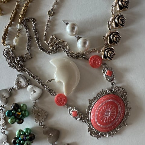 Vintage smykke i duse pastellfarger.