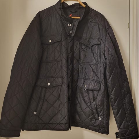 Dressmann, tynn stilig boblejakke, men med strikket armer.