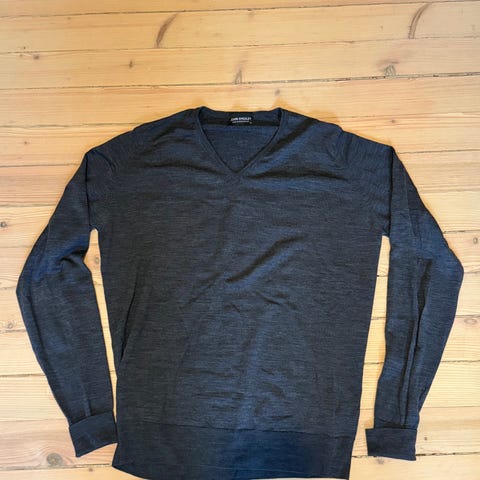Nydelig grå herregenser i 100% merinoull.