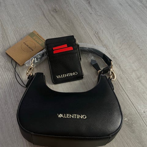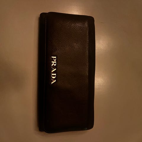 Selger en Versace lommebok i svart lakk. Pent brukt. Det er til sedler, mynt,og til 8 bankkort . Meget praktisk. Selges billig.Den er meget pen i virkligheten, bildene lyver litt.