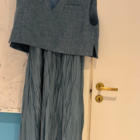 Kjortel kjole, japansk inspirert i nydelig grønnfarge. Med lommer. Lager i modalstoff. Kjolen er ikke strøket på bildene. Passer også str. M. Beltet medfølger ikke.