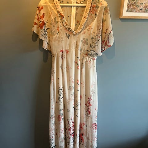 Nydelig kjole i solid materiale med innsydd underkjole. 50 viskose/50 elastian. Vakre farger i sjøgrønn og mint/turkis. Glidelås bak.