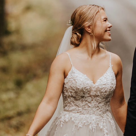 Selger min nydelige brudekjole, kjøpt på Snefrids hus for 13 000,-. Dette er en av hennes egne design. Kjolen er sydd om litt. Slepet er klippet av. Jeg er 170 cm høy og hadde 9 cm høye sko. Har det avklipte slepet enda og følger med ved salg. Kan sys til slør el.l.