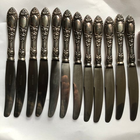 Disse knivene har delvis kjent eierhistorikk. Knivene stammer fra husholdningen til en barnløs dame (enke) som levde fra 1903 til 2000. Denne damen var en fjern slektning av meg, og hun hadde ingen livsarvinger. I 2000 var jeg nyutdannet, og hadde akkurat flyttet til Østlandet, og ettersom at jeg nettopp hadde gått til anskaffelse av min første bolig, og jeg ikke hadde noe som helst av inventar, så fikk jeg overta restene av boet etter denne damen. Om kjøper av disse knivene er interessert, så kan jeg opplyse om navnet på damen som en gang i tiden har eid dem. Den norske damen som en gang i tiden eide disse knivene hadde nok ingen ting med den amerikanske produsenten av knivene å gjøre.