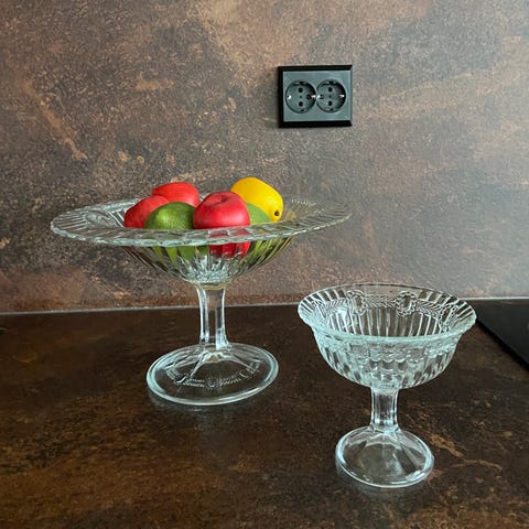 Jeg leier ut stettglass, vaser og telysestaker i klart glass til selskaper.