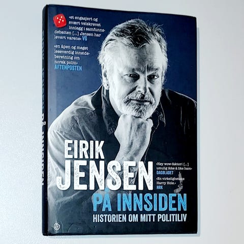 EIRIK JENSEN «PÅ INNSIDEN-HISTORIEN OM MITT POLITILIV»2015,H.23,5cm B.16,5cm