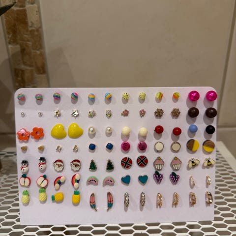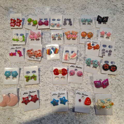 Øredobber med forskjellige frukt og blomstermotiver (7 forskjellige par)