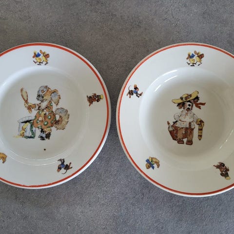 Veldig snålt barneservis med dyp og flat tallerken. Kahla Tysk. Ingen hakk eller krakkelering.