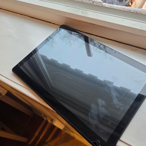 Lenovo nettbrett selges, minste jenta mista nettbrettet med skjermsiden ned ved et uhell så den har knust oppe i venstre hjørne og ca midt over skjermen men alt funker som det skal av knapper og touch, har kun blitt brukt til nrk super her hos oss.