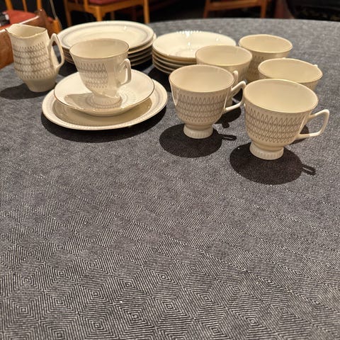 Kr.100,- pr.kuvert. Kopp, skål pluss asjett.Har 14 stk.