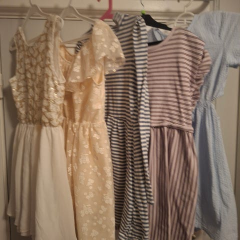 Pent brukte kjoler i str.134/140 selges for kr.100 per plagg