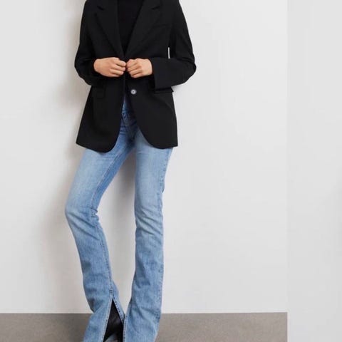 Definert av en overdimensjonert silhuett, er STANDs Georgina-blazer laget av glatt kunstskinn og drop shoulders for en hyllest til den stilige 80-tallstiden.