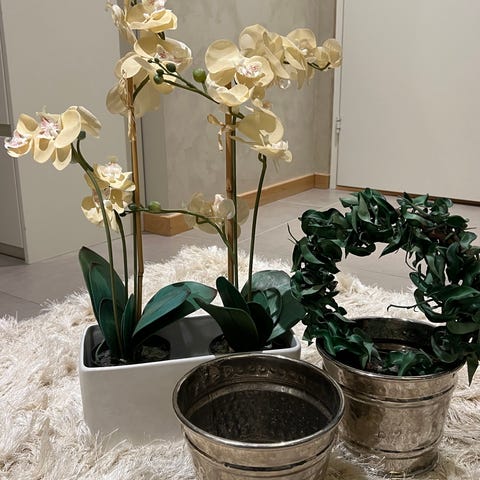 NYE Kunstig Orkidé 65 cm Hvit i Gyllen og Rosa krukker - Gi BUD!