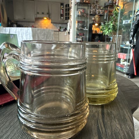 Seidler, eller krus, fra Hadeland Glassverk, formgitt av Willy Johansson.