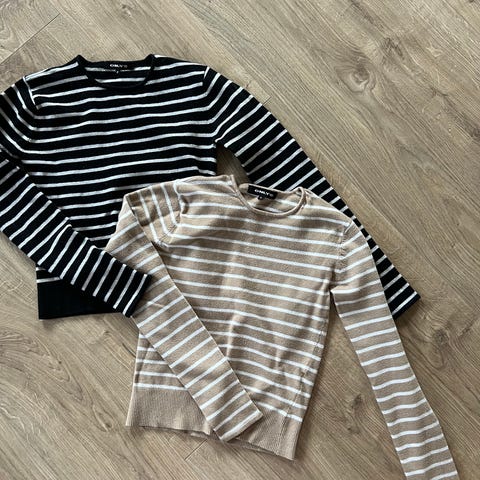 Langermet brun collegegenser str S. Rett ned i fasongen, til bukselinningen.