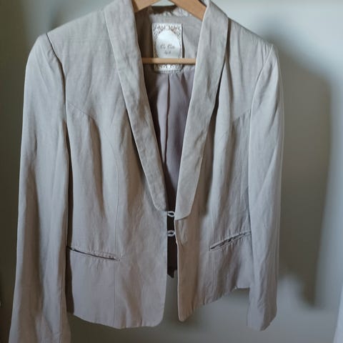 Svart blazer fra Vero Moda med glitter i stoffet. Den har ingen lukking, og et ment for å være åpen utenpå en skjorte eller topp.