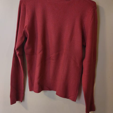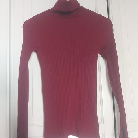 Ribbestrikket Bomull genser. Vin-rød. Burgunder. Halvhøyhalset. SIGNATURE.