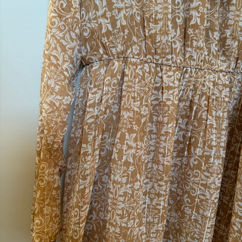 Strandkjole, gul og hvit, one-size, kr 100,- pent og lite brukt