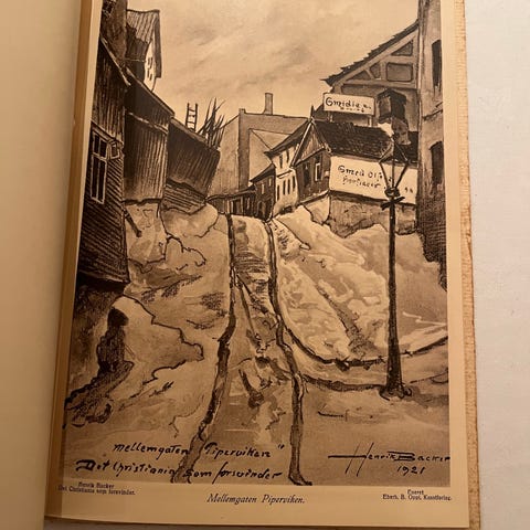 Etter første verdenskrig tegnet han en rekke bilder fra det gamle Christiania, et Christiania som var på vei til å forsvinne. Disse bildene var blant annet fra Piperviken.