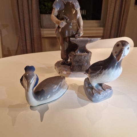 Jeg selger tre ulike figurer fra Royal Copenhagen - Bing og Grøndahl. De er i ulik støttelse og mål er oppgitt med bilde av målebånd på bildene.