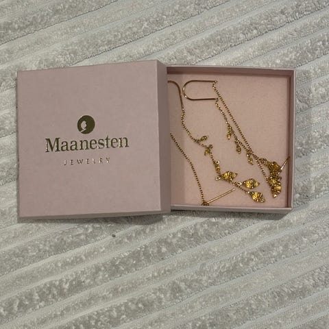 Kort justerbart kjede med "perle" fra Edblad (varm fin gull-farge). Justerbar lengde fra ca 34 til 40cm.