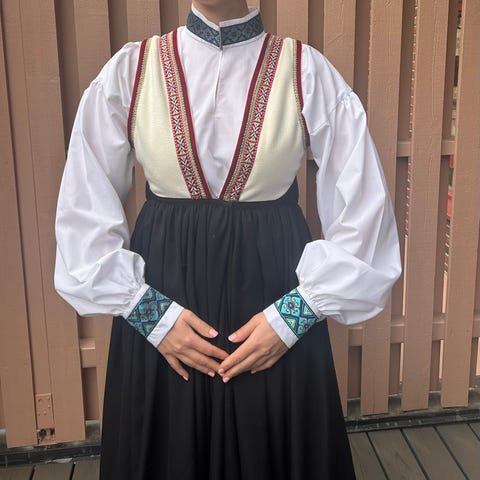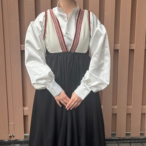 Håndsydd bunad skjorte/ festdrakt skjorte med rosa/mørkerosa broderier🌺🌸 skjorten er helt unik og jeg er ganske sikkert på at broderiene også håndsydd.Passer ca størrelse 36-40 og skjorten er laget av bomull. Skjorten har knapper ved håndleddet ikke hull til mansjettknapper. Skjorten er ubrukt, den er samme størrelse som alle andre skjorter på profilen min. Jeg/modellen er 172 høy og bruker til vanlig S/M.