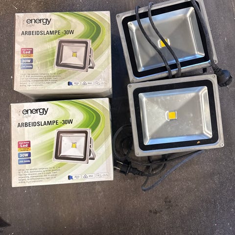 Selger to nye Malmbergs lyskastere 50W LED Zenit. Selges for 500kr per stk.