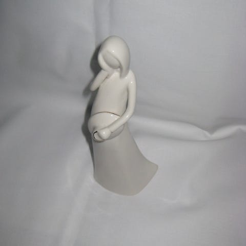 Vintage sjarmerende figure dame med hund i porselen, høyde ca 16 cm, pent brukt, til salgs