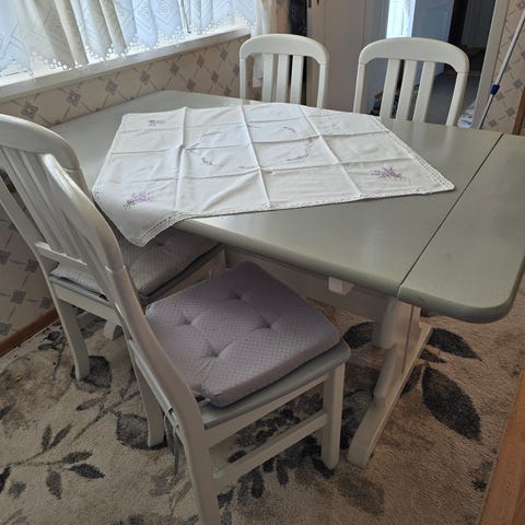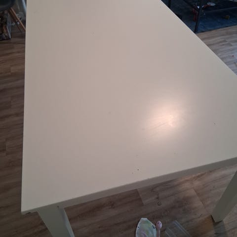 Pent spisebord, noen små merker i bordplaten, med ilegg-plate.
