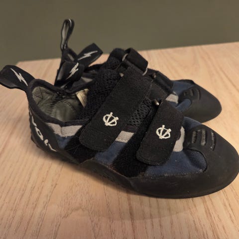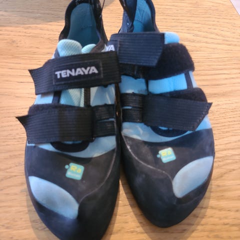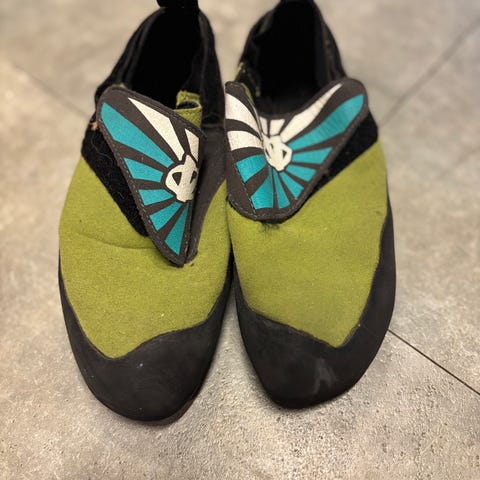 Nye evolv klatresko str. 38, men passer mest sannsynlig 36. Prøvd ei gang, men passet ikke (ble for små).