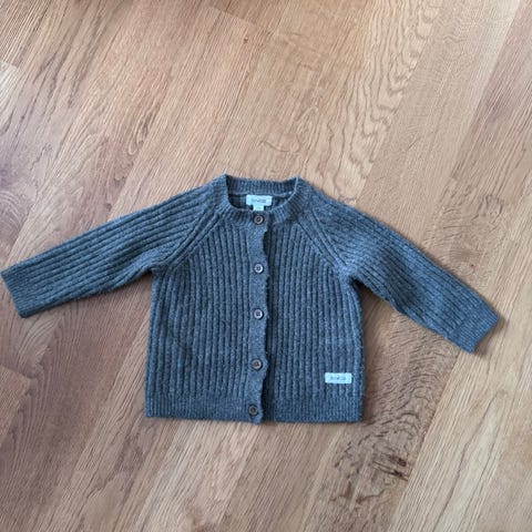 Godt brukt søt strikket grå cardigan fra Newbie i str. 74 med treknapper