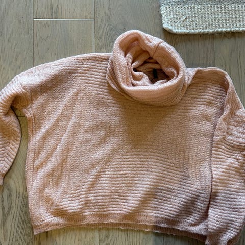 Kun prøvet på, ikke brukt. Som ny. 40% angoraull, 40% nylon og 20% lanaull.