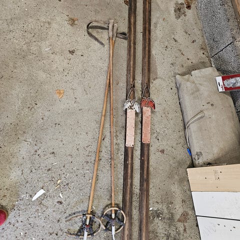 Original del av gammel ski selges som dekorasjons objekt. Perfekt på veggen på en fjellhytte. Skien er øverste del av en ski og måler kun 120 cm lang. Den har en fantastisk patina. Dette er ekte håndlaget treski. Vanskelig å datere men vi snakker 100 år+. Må sees. Se bilder. Funnet på en låve i øvre del av Hallingdalen. Emner; hytte, innredning, autentisk, gammel, treski, veggpynt, interiør.