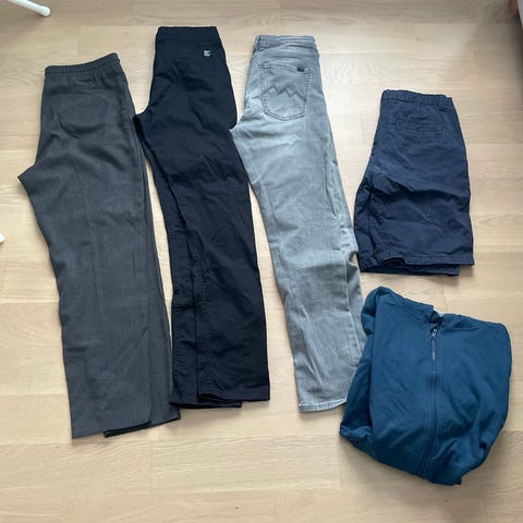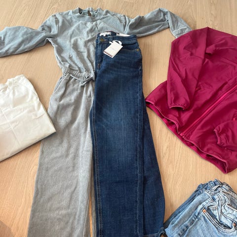 1 jeans str 170, fikk rift på låret så det er sydd sammen