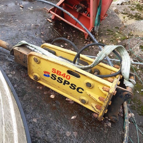 Utleie av kompressor og borhammer til å bore i stein og fjell.