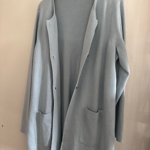 Anette Stai lang jakke/kåpe lys grå i myk 100% bomull str L. Kun brukt en gang