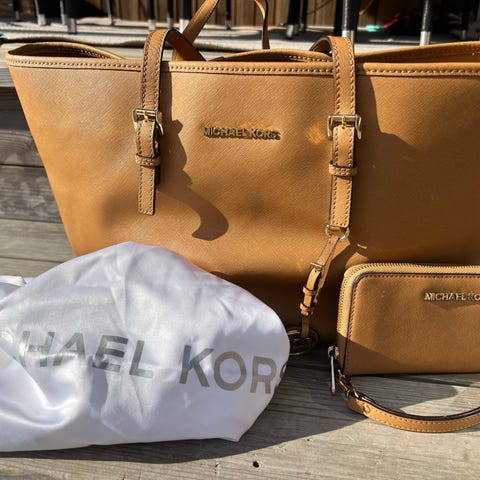Selger en pen brukt rosa Michael Kors veske med lommebok. Veldig lite brukt