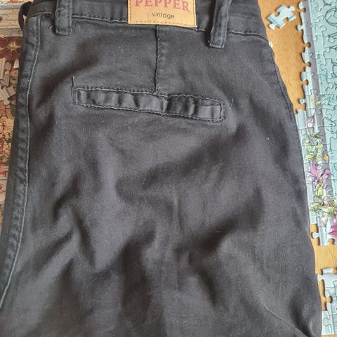 Buksen har tøffe lommer i sidene og bak, og er litt elastisk i stoffet