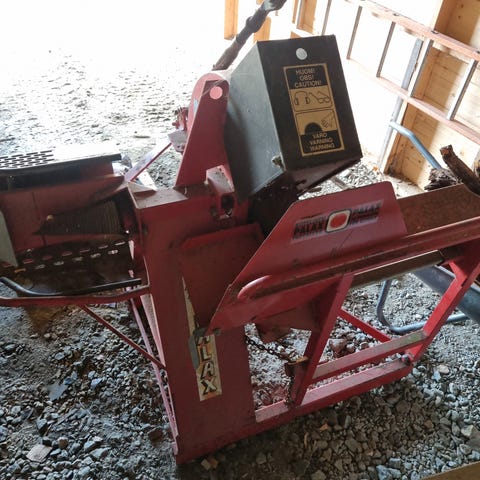 Effektiv og brukervennlig bensindrevet vedmaskin leies ut. Denne både kapper og klyver.