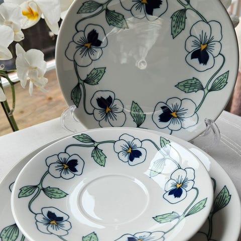 Søkeord: Porselen - Kaffe - Fat - Asjett - Hvit - England - Vintage