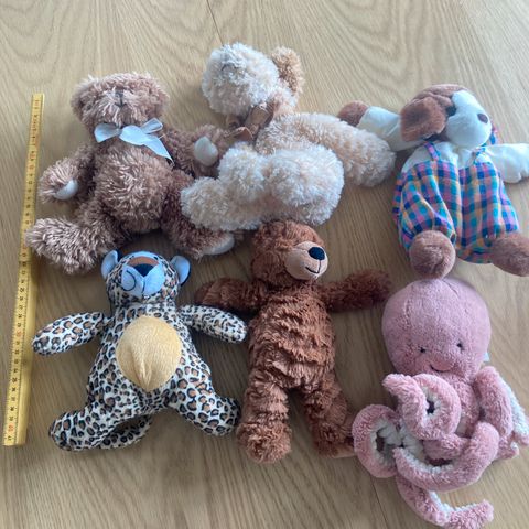 Dyreste bamsene vi noen gang har kjøpt ;) Ørten lodd forsøkt før disse ble gevinster på tivoli. Stor stas umiddelbart, men deretter aldri lekt med. Er dermed som nye. Ca 20-25 cm i lengde. Selges helst samlet for 60,-