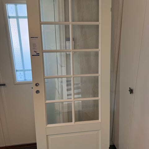 Selger Swedoor funkis massiv innedør. Selger dørblad og karm samt håndtak.