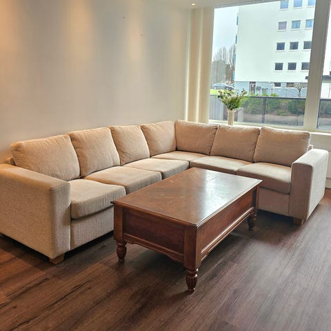 2 settersofa - 140x80x83, bordet - 161x81x55