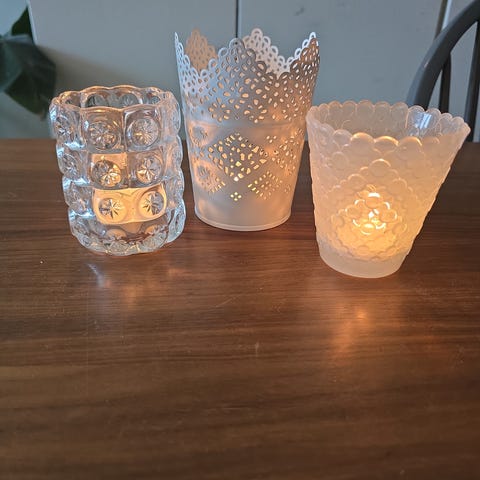 Små kvadratiske potter til små juledekorasjoner eller telys.